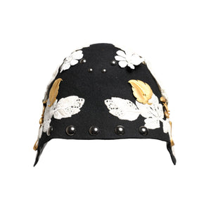 Dolce & Gabbana Black Wool White Floral Gold Leaf Cloche Hat
