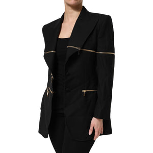 Dolce & Gabbana Black Wool Zipper Detailing Blazer Jacket