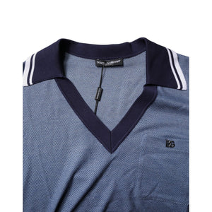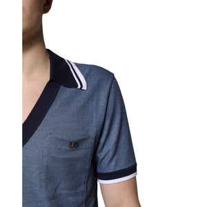 Dolce & Gabbana Blue Collared V-neck Silk Blend Polo T-shirt