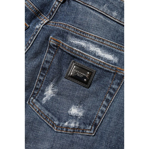 Dolce & Gabbana Blue Cotton Boyfriend Tattered Denim Jeans