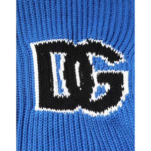 Dolce & Gabbana Blue Cotton Logo Patch Ribbed Knit Cardigan Sweater
