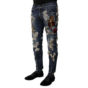 Dolce & Gabbana Blue Cotton Rhinestone Embellish Denim Jeans
