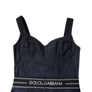 Dolce & Gabbana Blue Cotton Stretch Sleeveless Bodycon Denim Bodysuit