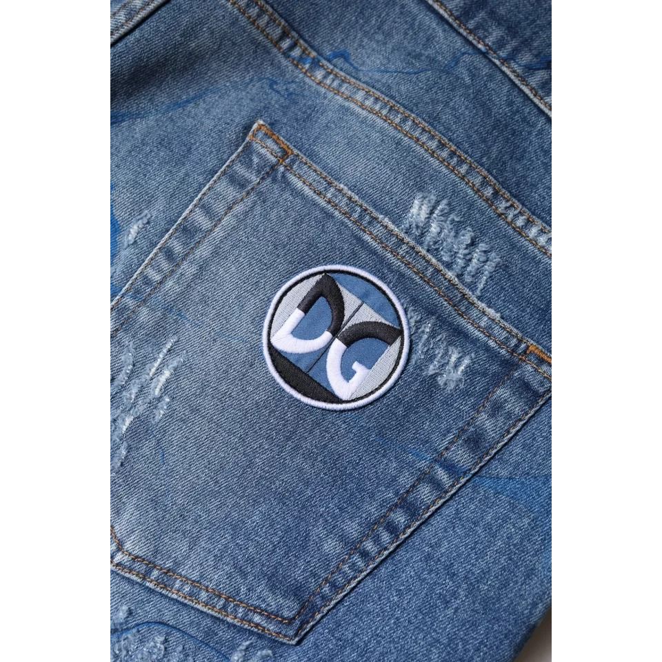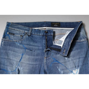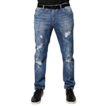 Dolce & Gabbana Blue Cotton Stretch Tattered Skinny Denim Jeans