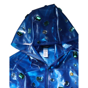 Dolce & Gabbana Blue Crystal Hooded Raincoat Jacket