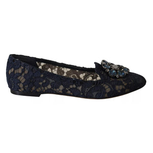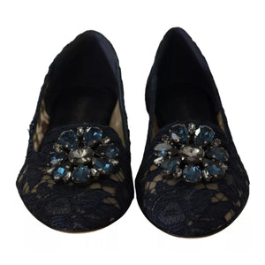 Dolce & Gabbana Blue Crystal Loafer Lace Ballet Flats Shoes
