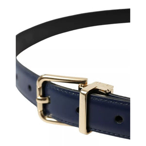 حزام دولتشي آند غابانا للرجال من الجلد الأزرق بمشبك معدني ذهبي