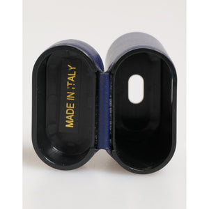 Dolce & Gabbana Blue Leather Logo Print Flip Holder Men Airpods Case