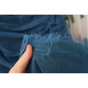 Dolce & Gabbana Blue Mesh Trim Ruched Tulle Sheath Dress