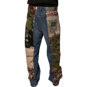 Dolce & Gabbana Blue Patchwork Cotton Straight Denim Jeans