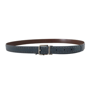 Dolce & Gabbana Blue Perforated Leather Gray Buckle Belt