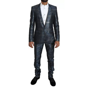Dolce & Gabbana Blue Silver Shiny 2 Piece Slim GOLD Suit