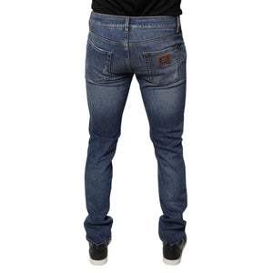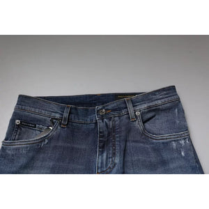 Dolce & Gabbana Blue Tattered Cotton Stretch Skinny Denim Jeans