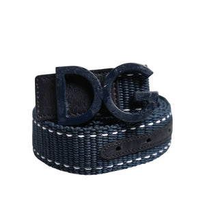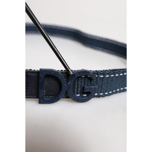 Dolce & Gabbana Blue White Cotton DG Logo Metal Buckle Belt