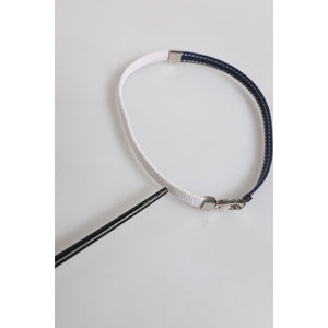Dolce & Gabbana Blue White Leather Trimmed DG Engraved Silver Tone Clasp Bracelet