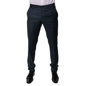 Dolce & Gabbana Blue Wool Tapered Formal Dress Pants