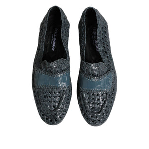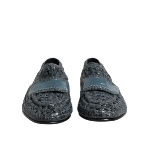 Dolce & Gabbana Blue Woven Leather Slip On Loafers Shoes
