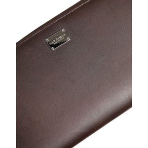 Dolce & Gabbana Brown Calfskin Leather Logo Zip Around Continental Wallet