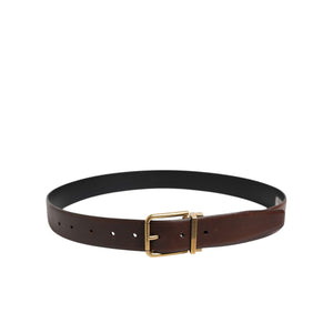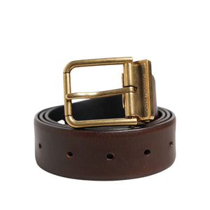 Dolce & Gabbana Brown Classic Gold Metal Logo Buckle Men Belt