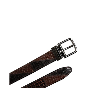 Dolce & Gabbana Brown Exotic Leather Metal Logo Buckle Belt