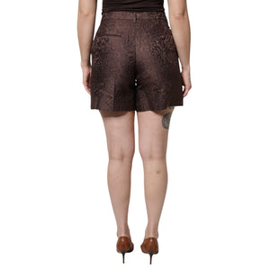 Dolce & Gabbana Brown Floral Brocade Mid Waist Mini Short