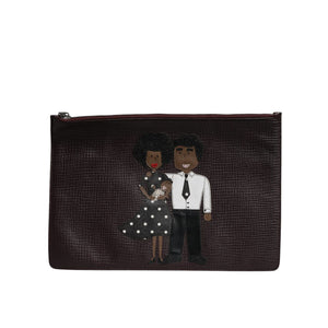 Dolce & Gabbana Brown Leather #DGFAMILY Embellished Men Clutch Pouch Bag