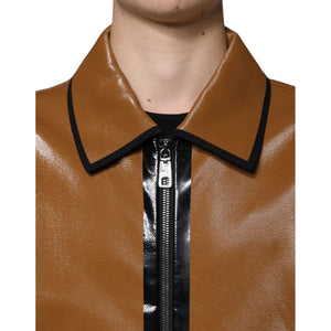 Dolce & Gabbana Brown Leather Full Zip Men Bomber Jacket
