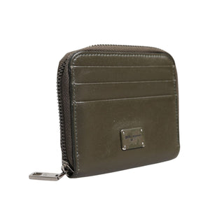 Dolce & Gabbana Brown Leather Logo Plaque Card Holder Coin Purse Wallet