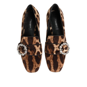 Dolce & Gabbana Brown Leopard Print Crystals Loafers Flats Shoes