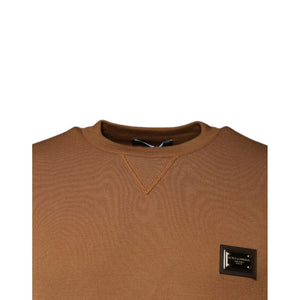 Dolce & Gabbana Brown Logo Plaque Crew Neck Pullover Sweater