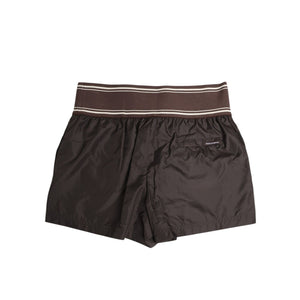 Dolce & Gabbana Brown Polyester Logo Elastic Waistband Swimwear