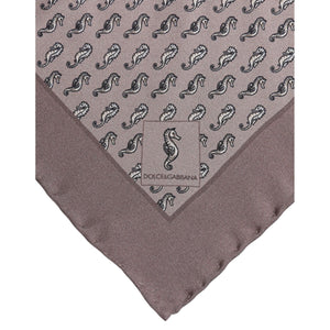 Dolce & Gabbana Brown Sea Horse Silk Square Foulard Scarf