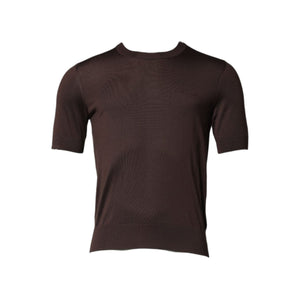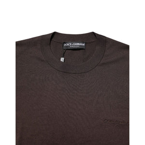Dolce & Gabbana Brown Silk Logo Embroidery Crew Neck T-shirt