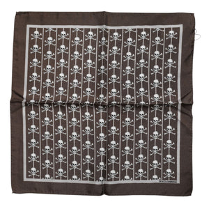 Dolce & Gabbana Brown Skull Silk Square Men Foulard Scarf