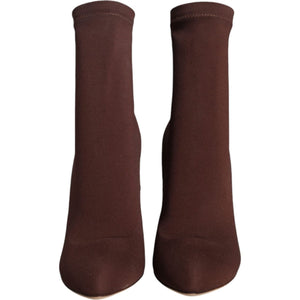 حذاء دولتشي آند غابانا بني بكعب ستيليتو وجوارب وحذاء طويل حتى الكاحل