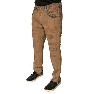 Dolce & Gabbana Brown Tattered Cotton Skinny Denim Jeans