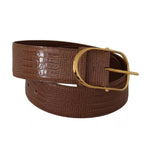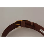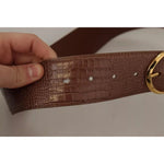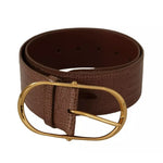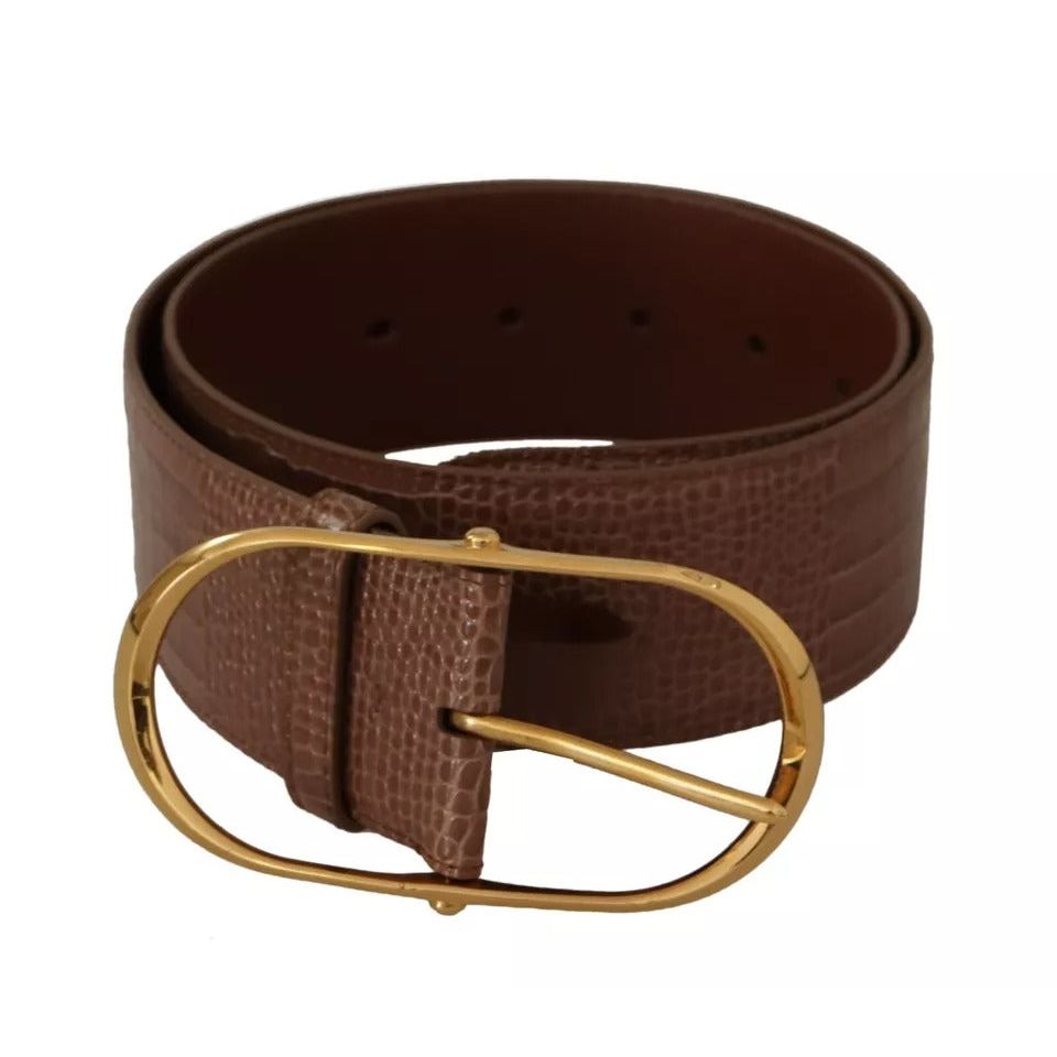 حزام دولتشي آند غابانا بني عريض الخصر من الجلد بمشبك معدني بيضاوي ذهبي