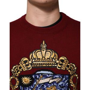 Dolce & Gabbana Burgundy Cashmere Lion Crest Pullover Sweater