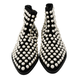 Dolce & Gabbana Black Suede Pearl Studs Boots Shoes