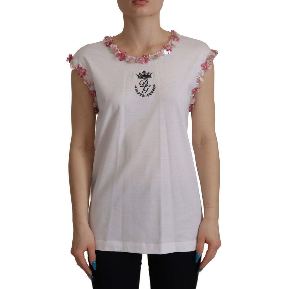 Dolce & Gabbana White DG Crown Floral Sequin T-shirt