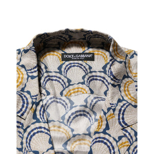Dolce & Gabbana Cream Cotton Silk Hawaii Scallop Shell Print Shirt