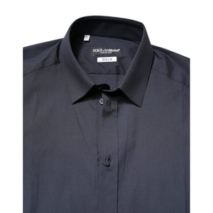 Dolce & Gabbana Dark Blue GOLD Cotton Dress Formal Shirt