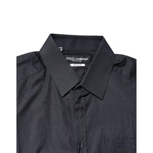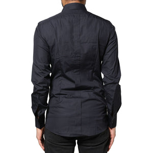 Dolce & Gabbana Dark Blue GOLD Cotton Long Sleeves Dress Shirt