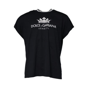 Dolce & Gabbana Dark Blue Logo Crown Cotton Crew Neck T-shirt