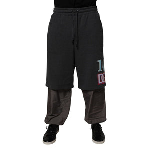 Dolce & Gabbana Dark Gray Cotton Layered Straight Sweatpants Pants