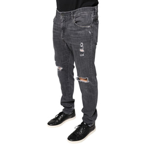 Dolce & Gabbana Dark Gray Tattered Cotton Skinny Denim Jeans