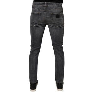 Dolce & Gabbana Dark Gray Washed Cotton Skinny Men Denim Jeans