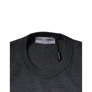 Dolce & Gabbana Dark Gray Wool Crew Neck Pullover Sweater