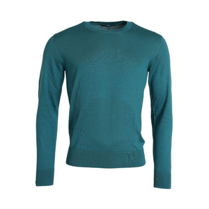 Dolce & Gabbana Dark Green Silk Crew Neck Pullover Sweater