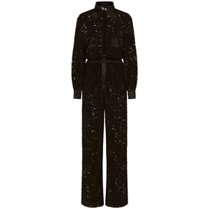 lace-trim long-sleeve jumpsuit from DOLCE & GABBANA featuring jet black, silk-cotton blend, lace trim, semi-sheer construction, classic collar, concealed front button fastening, long sleeves, buttoned cuffs, elasticated waistband, two chest patch pockets and straight leg. Lace long shirt jumpsuit Size and Fit - This piece fits true to size. We recommend you get your regular size. Model is 1,75m / 5ft 8in wearing size 40 (IT)